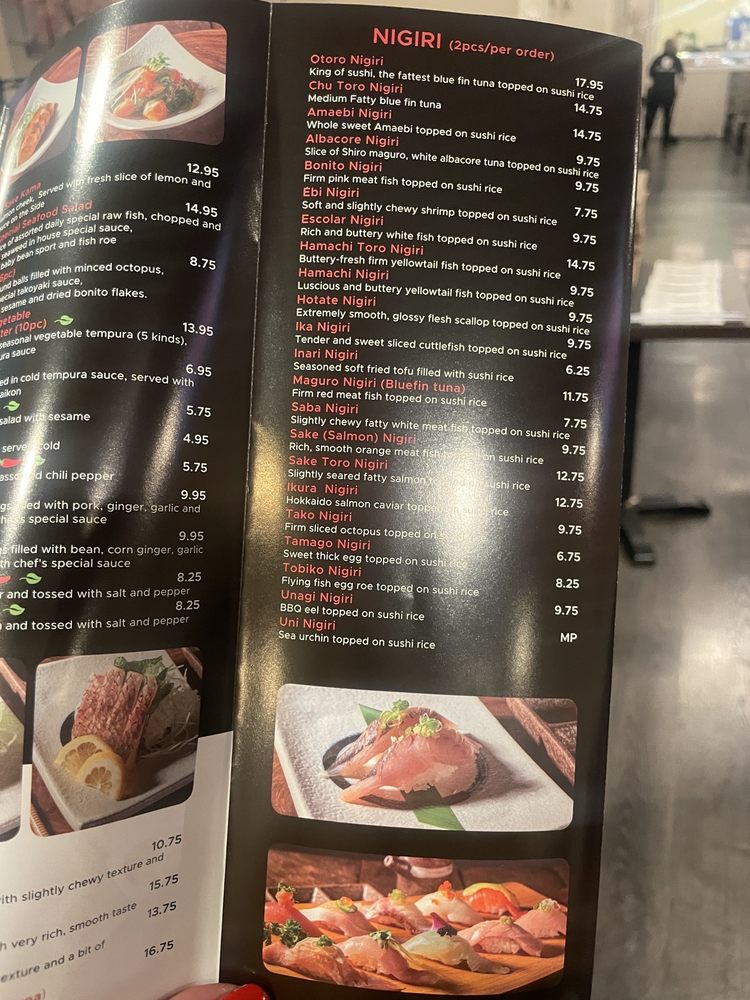 Chef's special daily choice with : pc fresh sashimi, pc unique nigiri and pc spicy tuna roll